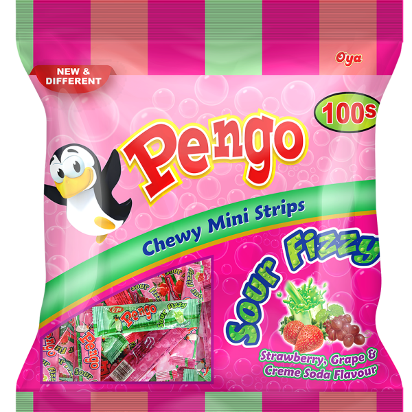 Pengo Sour Fizzy Mini Bag – Strawberry, Grape & Crème Soda Flavour